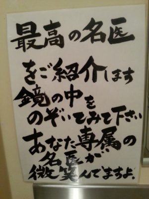寄り添ってくださるクリニックです。↑トイレの鏡の横の張り紙 ↑ 荒井恵子先生 ↑ がんのサードオピニオンも 目指すは桃色の肌!